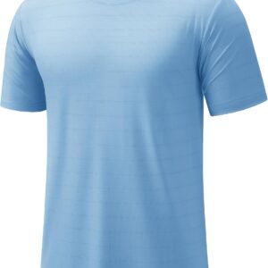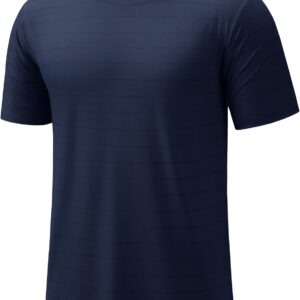 AUOGU Fashion Stripes Round Neck Stitching Short Sleeves Men Loose Outdoor T-Shirt Breathable Quick-Drying Sweat-Wicking Vest